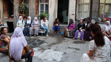 Amed’de Sûr Belediyesi Eşbaşkanı Fatma Gulan Önkol, bu hafta da Abdaldede Mahallesi’nde bir evin avlusunda kadınlarla bir araya geldi.