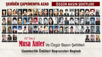 Bu yıl 31'incisi düzenlenen Musa Anter ve Özgür Basın Şehitleri Gazetecilik Ödülleri için başvurular başladı. Yarışmaya katılım için son başvuru tarihi 10 Eylül olurken, seçilen eserler ise 18 Eylül'de açıklanacak.