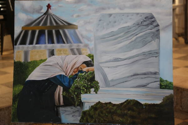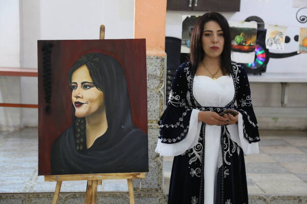 Jîna Mahsa Amînî’nin tablosunu çizen Ressam Cîhan Şahîn, “İkinci kezdir sergiye katılıyorum. Bu yıl dört tablo ile sergiye katıldım. Tablolarımda sessiz doğa, kişilik ve Kürt öncüler Qadî Mihemed, Şêx Seyîd, Yılmaz Güney ve İran’da katledilen Jîna Mahsa Amînî gibi konular yer alıyor. Jîna Mahsa Amînî’den çok etkilendim. Tablomla İran ve Rojhilatê Kürdistan’daki ayaklanmalara destek vermek istedim. Bu kapsamda ‘jin, jiyan, azadî’ diyerek konuşmamı sonlandırmak istiyorum” dedi.
