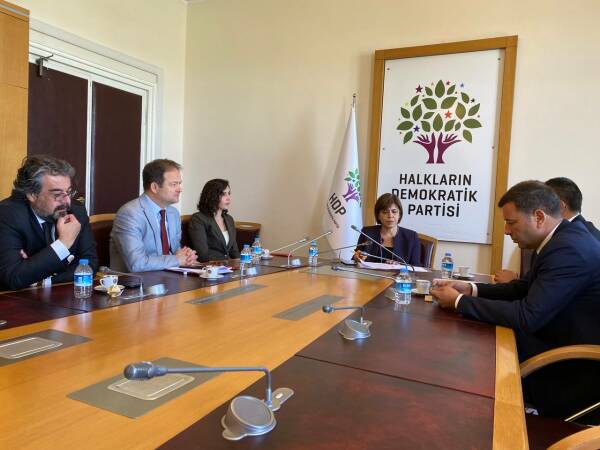 Ankara - AKP-MHP milletvekilleri tarafından getirilen “dezenformasyon yasası”na ilişkin gazetecilik meslek örgütleri Halkların Demokratik Partisi (HDP) Parlamento Grubu’nu ziyaret etti. Parlamento Muhabirleri Derneği Başkanı Kemal Aktaş, Gazeteciler Cemiyeti Genel Sekreteri Kenan Şener, Türkiye Gazeteciler Sendikası Başkanı Gökhan Durmuş, Çağdaş Gazeteciler Derneği Genel Başkan Yardımcısı Şeyma Paşayiğit ve Ekonomi Muhabirleri Derneği Başkanı Turgay Türker’in yer aldığı heyet HDP Grup Başkanvekili Meral Danış Beştaş ile görüştü.