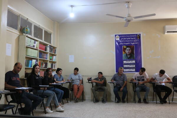 Demokratik Toplum Akademileri’nin her birinin farklı bir rol üstlenen beş temel komite üzerinde örgütlendiğini dile getiren Nuha Omer, “Demokratik Toplum Akademileri beş temel nokta üzerinde örgütleniyor. Bunlar; Eğitim Komitesi, Araştırma Komitesi, Maliye Komitesi, Arşiv Komitesi ve Kadın Komitesi’dir. Bu komitelerin her birinin farklı bir görevi vardır. Eğitim Komitesi’nin görevi, eğitim üyelerini organize etmektir. Kadın Komitesi de özerklik rolünü oynuyor. Aynı zamanda Araştırma Komitesi eğitimde verilecek olan konular üzerinde araştırmalar yaparak, broşürler hazırlıyor ve daha sonra da her üç ayda bir araştırma dergilerini çıkararak, bu dergileri kurumlara dağıtmaktadır. Halihazırda toplumun yüzde 60'ı eğitim alıyor ve Özerk Yönetim kurumlarındaki insanların yüzde 40'ı bu akademilerde eğitim görüyor. Bu akademilerde çocuklar dahil olmak üzere her yaş grubundan insanlar eğitim alabilir” şeklinde konuştu.